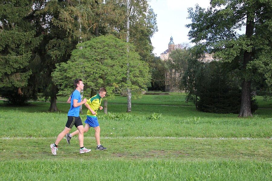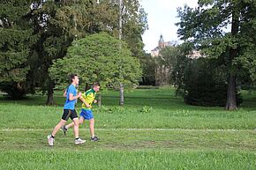 Bei optimalem Laufwetter versuchten die 5-8 Klassen auf dem Sportplatz und die Klassen 9 - 11 auf dem Gelände des ehemaligem "Pioniersportplatz" viele Runden zu erlaufen. Im Vorfeld des Sponsor-Laufes haben sich die SchülerInnen selbständig einen "Sponsor", angefangen von mittelständischen Firmen, Geschäften der Umgebung bis hin zu Mutti, Oma oder Freund, gesucht. Dieser veranschlagte einen geldwerten Rundenerlös. Ziel war es, die noch ausstehenden Kosten der Farbgebung der Kletterwand aufzubringen und das Projekt "Kletterwand" am Gymnasium Fridericianum fertig zu stellen. Nach ersten Einschätzungen ist dies durch die tatkräftige Unterstützung der Schülerschaft und der finanziellen Sponsortätigkeit der Firmen und Elternhäuser gelungen.