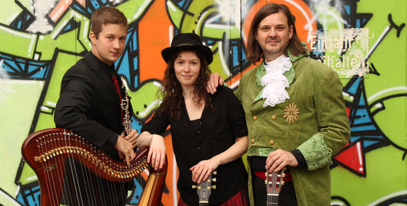 "Mykyta Sierov und Stefan Schmidt lernten sich im Herbst 2008 auf einer Klassik-Konzerttour durch Italien kennen. Seitdem musizieren sie gemeinsam auf Bühnen jeder Art in ganz Europa. Neben der regulären Besetzung mit Oboe und Gitarre greifen sie auch gern zu anderen Kombinationen: ob Melodika, E-Gitarre, Klavier oder Blockflöte – ihrer künstlerischen Energie sind keine Grenzen gesetzt. Im Frühling 2012 hörten sie Jessyca Flemming auf ihrer Harfe mit ihrem keltischen Programm und luden sie ein, für ein Konzert mit nach Prag zu kommen.