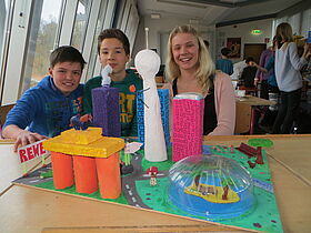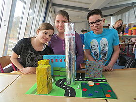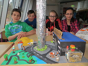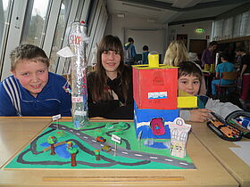 Stadtmodelle Klasse 6 – Die Kinder präsentieren uns ihre aus diversen “Abfallmaterialien” kreierten Traumstädte. Im Vordergrund geht es bei dieser Aufgabe um die Arbeit im Team.