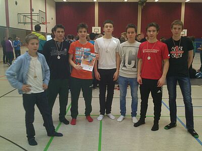 In einem spannenden und gutklassigen Schulamtsfinale im Basketball verschenkte unser Jungenteam eine mögliche Qualifikation zum Landesfinale. Das Turnier begann mit einem Arbeitssieg gegen Kaltensundheim (11:8). Im zweiten Spiel ging es mit dem wirbligen Team aus Neuhaus aktiv zur Sache. Anfangs hektisch, später überlegt, erarbeitete man sich ein 10:7. Danach hieß es gegen Römhild an der zweiten guten Halbzeit des vorherigen Spieles anzuknüpfen. Leider hatte das Team kein "glückliches Händchen" bei einer Menge von Korblegern. Dazu gesellten sich übereilte (Fehl-)Abspiele und so wurde dieses Spiel mit 4:7 abgegeben. Schade. Das Team um Normen Enke hätte es sich verdient ...