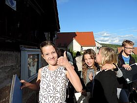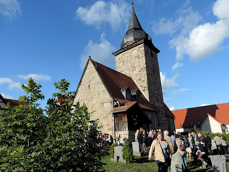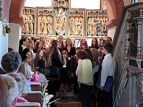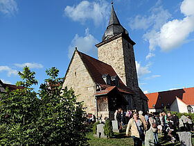 In dörflicher Idylle bei strahlendem Sonnenschein versammelten sich die Sänger unserer beiden Chöre vor der Kirche in Zeigerheim, um zum wiederholten Mal mit einem Programm beim Musikwochenende dabei zu sein.