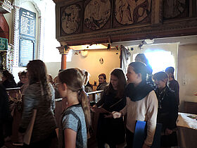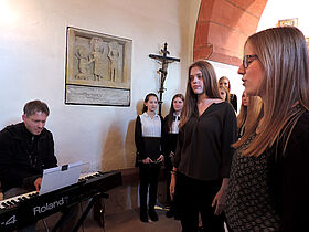 Als Novum war der neu gegründete Vorbereitungschor der Klassen 5 und 6 unter Leitung von Frau Streller mit drei kleinen Beiträgen im Programm. Trotz aller Aufregung meisterten die kleinen Sänger ihre Aufgabe gut und konnten zum ersten Mal Auftrittsatmosphäre schnuppern.