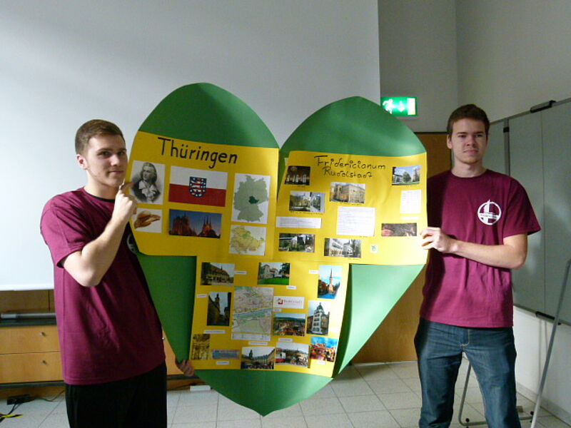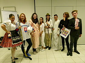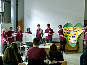 Am nächsten Morgen stellten die einzelnen Nationen ihr Heimatland, ihre Stadt und ihre Schule mit sehr unterhaltsamen und interessanten Präsentationen, die sie zu Hause vorbereitet hatten, vor. Bei einer anschließenden Stadterkundung mussten dann in international gemischten Gruppen Arbeitsaufgaben gemeinsam gelöst werden, hierbei wurden schon erste Freundschaften geschlossen. Am Abend gab es dann das schmackhafte und abwechslungsreiche internationale Büfett.