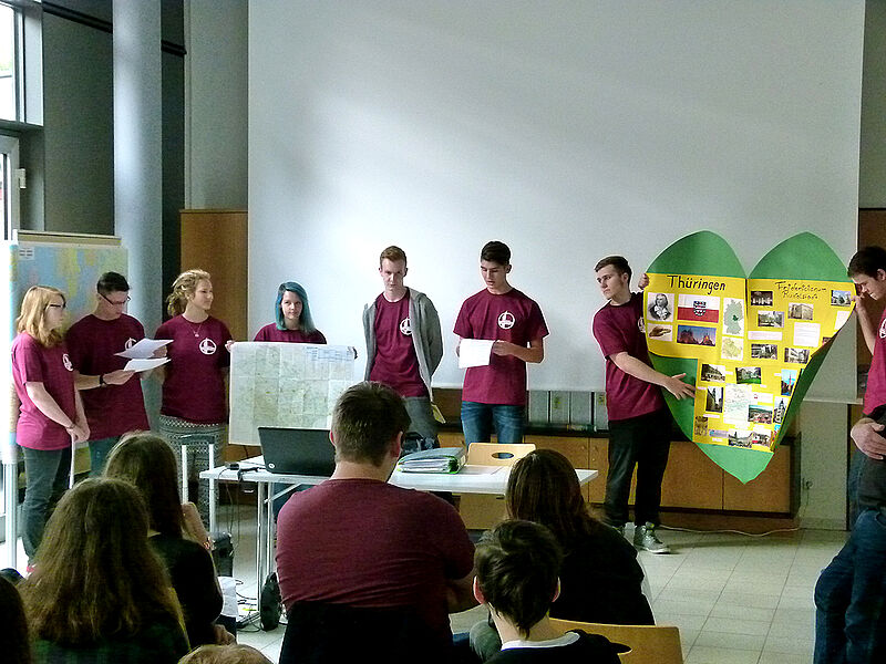 An den folgenden Tagen arbeiteten verschiedene Gruppen dann zu den Themen Demokratie und Menschenrechte/Ökonomie und Ökologie/Krieg und Frieden/Bildung und Werte. Viel Wissenswertes aber auch Spaß gab es dann bei der Präsentation der Ergebnisse.